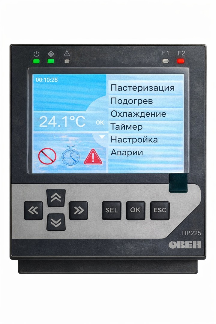 Управление работой пастеризатора осуществляется блоком управления. Весь процесс осуществляется автоматически. Значение температуры продукта определяется с помощью датчика температуры.