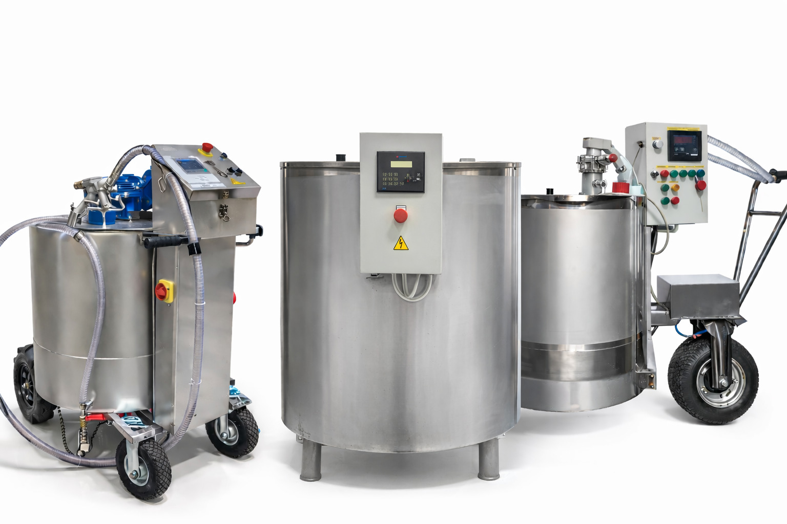 Ёмкость шатла: 100;120;150;200;250;300 литров двустенная, выполнена из нержавеющей стали. Внутри между стенками ёмкости циркулирует вода (вода циркулирует с низу и по бокам емкости, тем самым улучшается качество, и время пастеризации). Сверху установлена мешалка с электродвигателем.